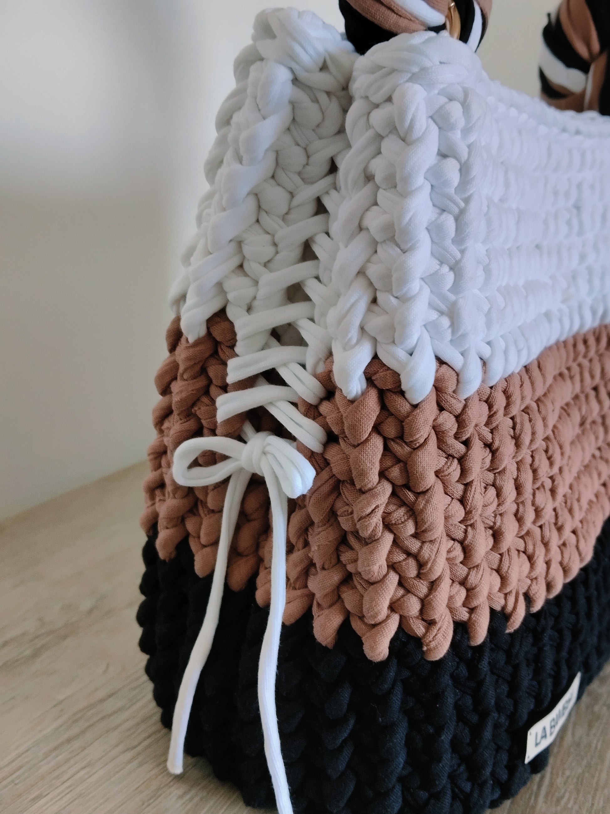 Precioso modelo en tres colores: negro, camel y blanco, tejida en punto cruzado con trapillo de alta calidad 😍