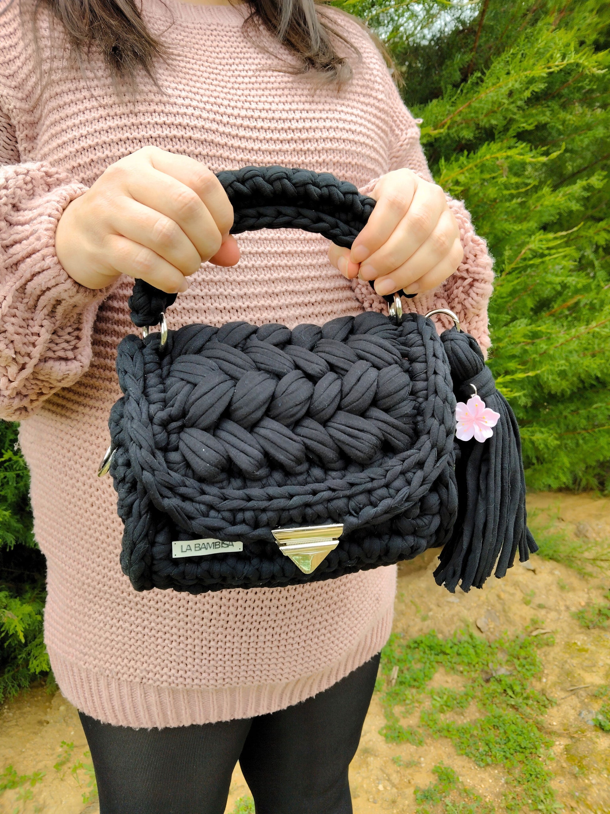 Confeccionada 100% a mano en crochet con trapillo de alta calidad y suavecito. Su diseño en color negro es versátil, elegante y combina fácilmente con cualquier look 🖤